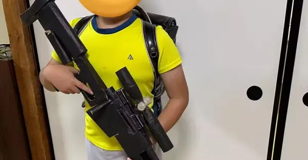 小學生用厚紙板做出了一把狙擊槍,在這個時間點秀出來有點尷尬