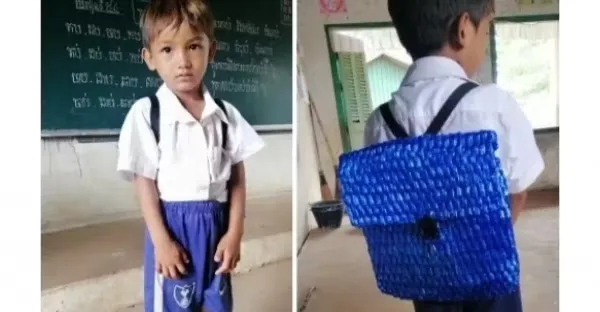 買不起書包!窮爸做粗工「錢全給兒子繳學費」 自責熬夜「一綑塑膠繩做出獨一無二書包」一打開惹哭老師!