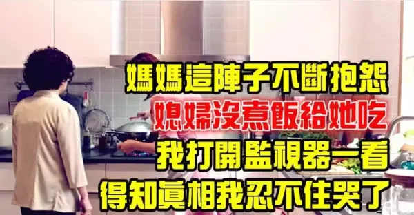 媽媽這陣子不斷的抱怨「媳婦沒煮飯給她吃」,但老婆卻說自己明明有煮,為了弄清楚是怎麼回事,我打開監視器一看「得知真相我忍不住哭了」…