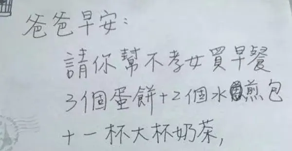 跟爸爸起口角!她隔天撒嬌留字條「請幫不孝女買早餐」 爸爸呆萌買完「發現誤會大了」父女倆笑翻和好!
