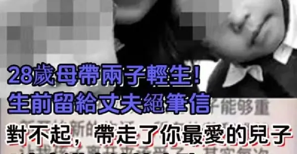 28歲母帶兩子輕生!生前留給丈夫絕筆信:「對不起,帶走了你最愛的兒子…」