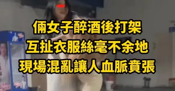 倆女子醉酒後打架,互扯衣服絲毫不留餘地,現場混亂讓人血脈賁張