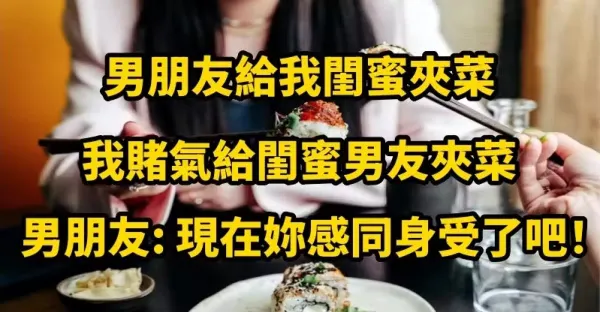男朋友給我閨蜜夾菜,我賭氣給閨蜜男友夾菜。男朋友:現在妳感同身受了吧!