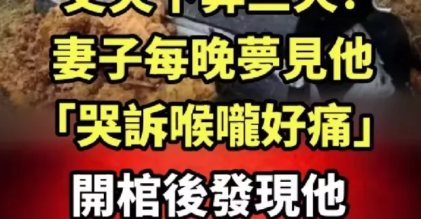 丈夫下葬三天!妻子每天晚上夢見他「哭訴喉嚨好痛」開棺後發現他「嘴裡的東西」立刻報警了