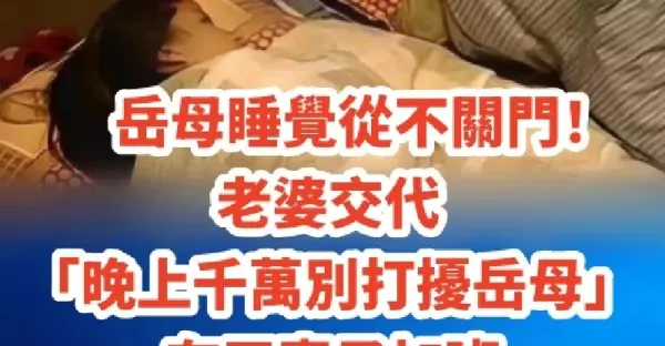 岳母睡覺從不關門!老婆交代「晚上千萬別打擾岳母」 有天妻子加班「我忍不住從門縫偷瞄」一看不淡定了