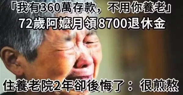 「我有360萬存款,不用你養老」!72歲阿嬤月領8700退休金 住養老院2年卻後悔了