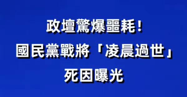 快訊/政壇驚爆噩耗!國民黨戰將「凌晨過世」死因曝光