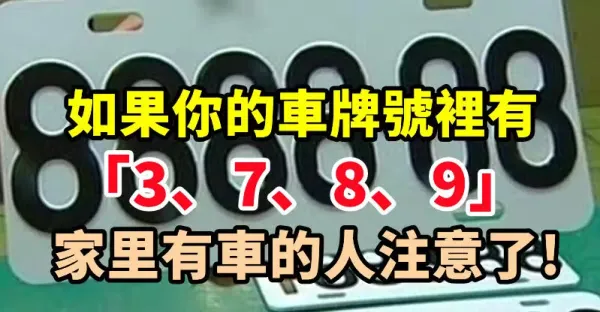 你的車牌號裡有「3、7、8、9」的注意了! 財神爺送財咯!