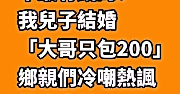 大哥是兄弟姐妹中最有錢的!我兒子結婚「大哥只包200」鄉親們冷嘲熱諷 他臨走前「把我拉了過去」