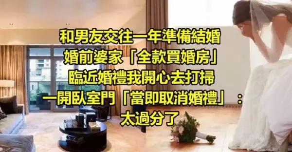 和男友交往一年準備結婚,婚前婆家「全款買婚房」!臨近婚禮我開心去打掃,一開臥室門「當即取消婚禮」 :太過分了‼️