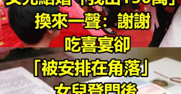 離婚多年 !女兒結婚「我出150萬」換來一聲:謝謝 吃喜宴卻「被安排在角落」女兒登門後我徹底醒悟