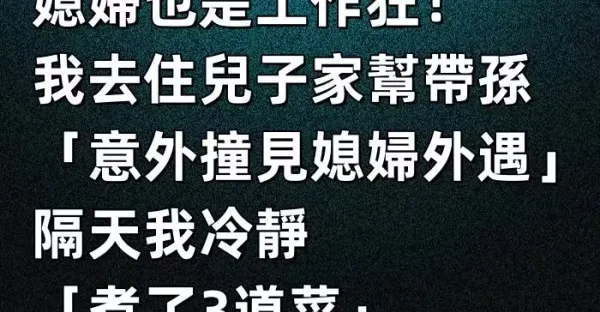 兒子常出差、媳婦也是工作狂! 我去住兒子家幫帶孫「意外撞見媳婦外遇」,隔天我冷靜「煮了3道菜」挽救了他們婚姻 ‼️
