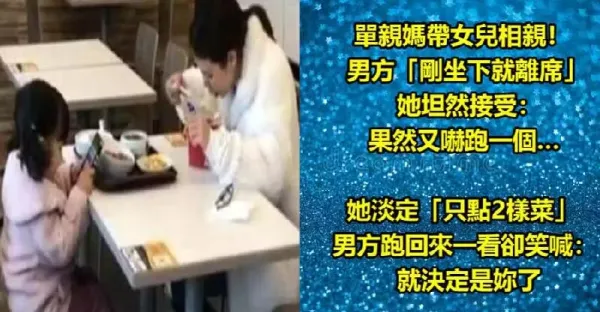 單親媽帶女兒相親!男方「剛坐下就離席」她坦然接受:果然又嚇跑一個… 她淡定「只點2樣菜」男方跑回來一看卻笑喊:就決定是妳了!