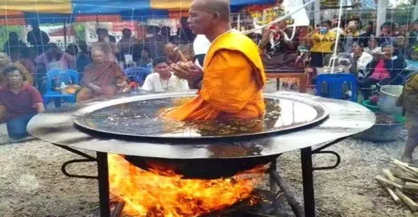 高僧表演「滾油鍋里打坐」,被遊客當場揭穿,原來套路這麼深!