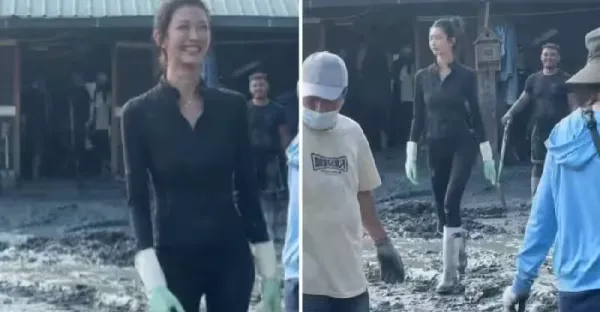 花蓮災區見高挑女子泥改裝中出,一看竟是「超女神模」!網贊爆:人美心也美