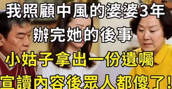 我照顧中風的婆婆3年, 辦完她的後事,小姑子拿出一份遺囑,所有人都傻眼了