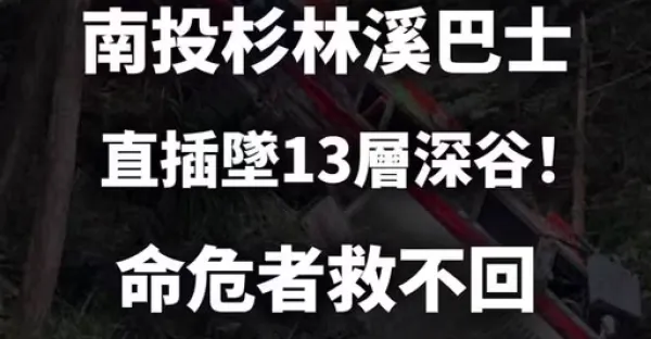 快訊/ 南投杉林溪巴士 「直插墜13層樓深谷」! 命危者救不回「傷亡名單」全出爐