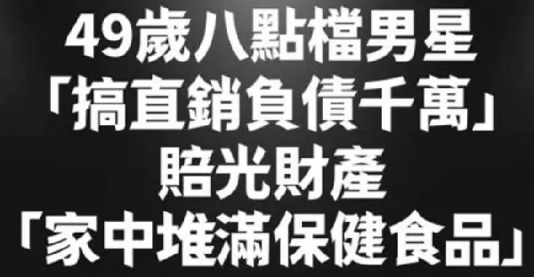 49歲八點檔男星 「搞直銷負債千萬」! 賠光財產「家中堆滿保健食品」痛哭沒人要...