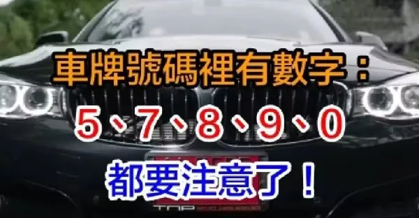 車牌號碼有「5、7、8、9、0」注意了,好運就是這樣連著來啦!