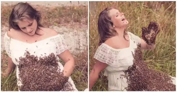 準媽媽「讓2萬隻蜜蜂爬滿孕肚」拍獨特孕婦寫真!預產期前6天「寶寶卻不動了」:只被螫3次...