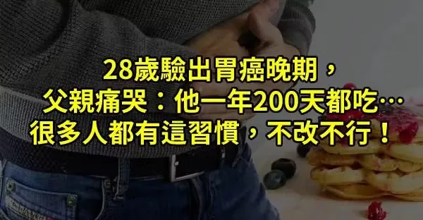 28歲驗出胃癌晚期,父親痛哭: 他一年200天都吃…很多人都有這習慣,不改不行
