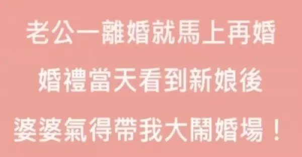 老公和我一失婚就馬上再婚,婚禮當天我看到新娘後,婆婆氣得帶我大鬧婚場