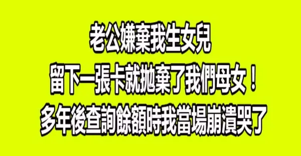 老公嫌棄我生女兒 ,留下一張卡就拋棄了我們母女! 多年後查詢餘額時我當場崩潰哭了