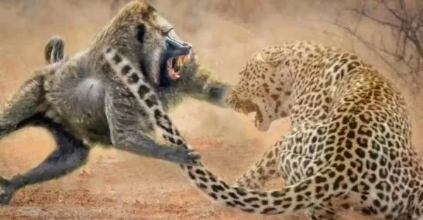 花豹偷偷獵殺一隻小狒狒,干凈利落不拖泥帶水,得手後被狒狒群圍攻