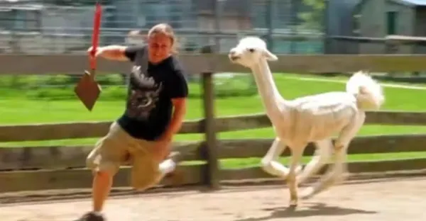 羊駝剪毛後「瘋狂報復」主人,請大家憋住不要笑,鏡頭拍下全過程.
