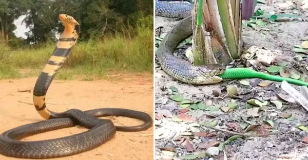森林眼鏡蛇在非洲橫行霸道,吃完綠曼巴蛇,接著吃非洲岩蟒