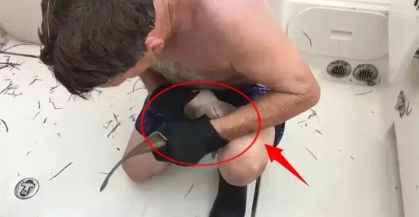 男子在水中游泳,突然感覺肚子疼痛,上岸後把人們嚇壞了