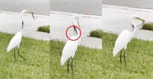蛇剛吞下就從脖子大洞漏出!白鷺淡定叼起重吞,腸穿肚爛仍在進食
