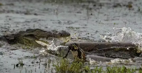 鱷魚與巨蟒的遭遇戰,蟒蛇剛剛進食完正處於疲憊期