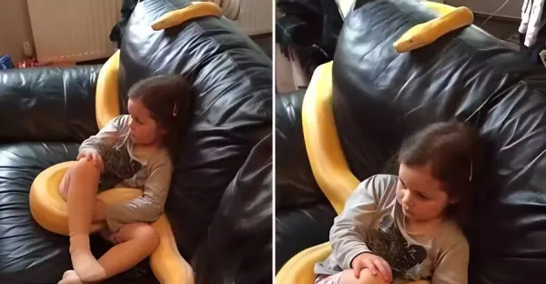 小女孩和「寵物蟒蛇」一起看電視,蟒蛇卻突然張開血盆大口,畫面讓人渾身發麻