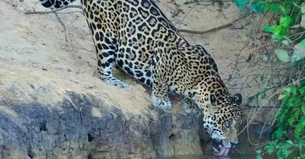 美洲豹河邊喝水,下一秒卻抓到一個「大傢伙」