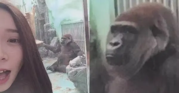 妹子在動物園跟猩猩拍照,回家看照片才發現不對勁!