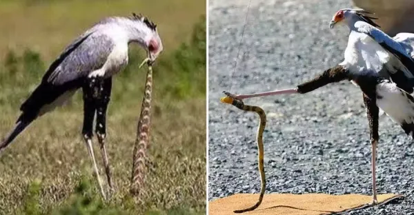被1.2米眼鏡蛇偷襲絲毫不慌,反手一套「無影腳」搞定,再把整隻都吞進肚子,最美捕蛇獵手「蛇鷲」
