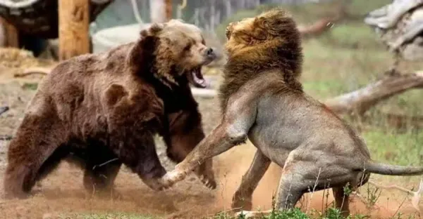 300斤黑熊誤闖獅子領地,獅子大開殺戒,場面太激烈了