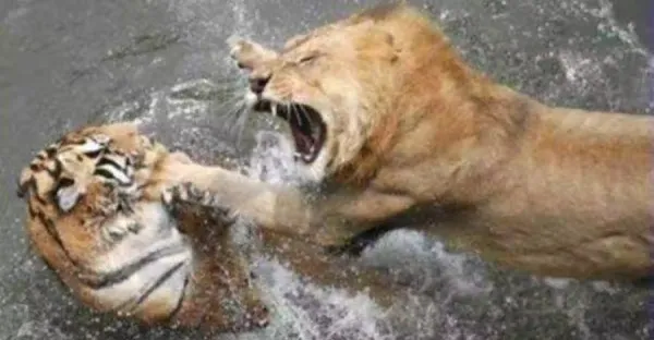 雄獅與老虎發生激烈沖突,雄獅被老虎一巴掌拍在地上,讓人意外