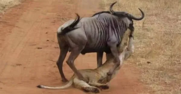 角馬在路上走著,身下竟拖著一隻母獅的殘軀?靠近後才知道原因