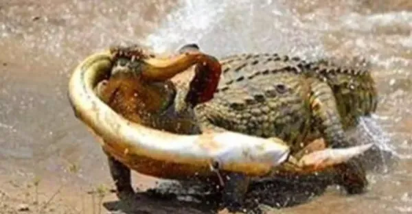 16張活久未見的照片,鱷魚咬住電鰻全身抽搐,最後同歸於盡
