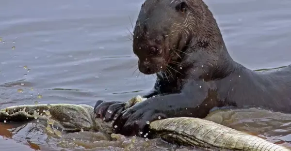 動物界「黑社會」水獺有多狠?體重不足30公斤,吃鱷魚就像吃麵條_楊姨_碧水_人們