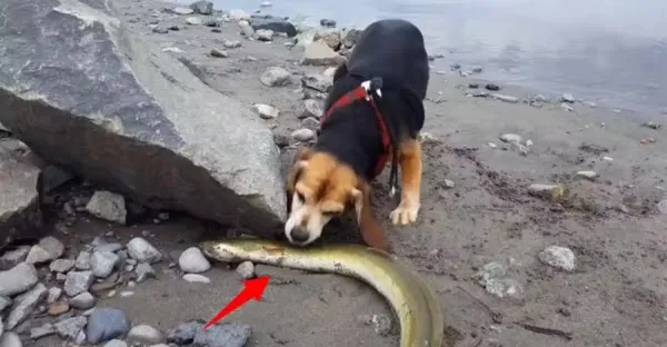狗狗一口咬住電鰻,以為有肉吃,下一秒就被電麻木了