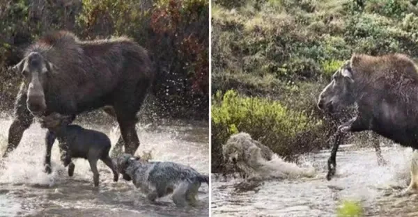 野狼被駝鹿引入水中,完全不知自己被算計,下一秒後悔都晚了