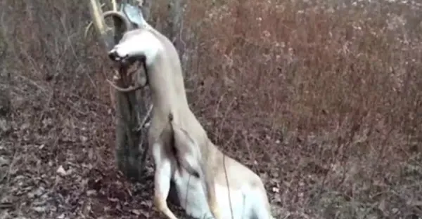 男子野外發現一頭鹿「卡在樹干中」,正想出手相救,走近看後不淡定了