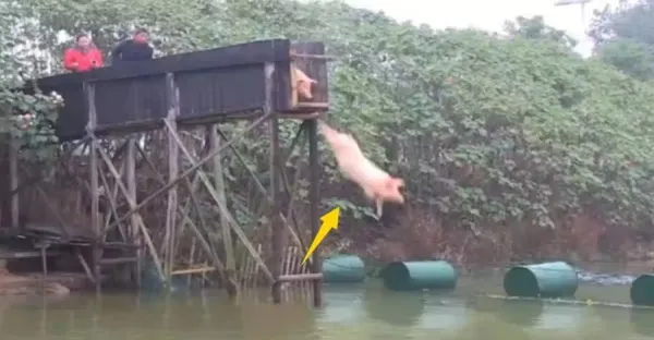 大爺訓練「豬跳水」,其主要目的竟是為了「口感」,大爺挺牛啊