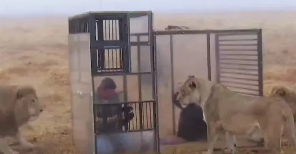 把人關進玻璃籠子裡,周圍全都是獅子,獅子們會做出什麼反應?