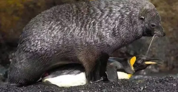 南極海豹「欺負」帝企鵝,時間長達40分鐘,得逞後還將它吃掉