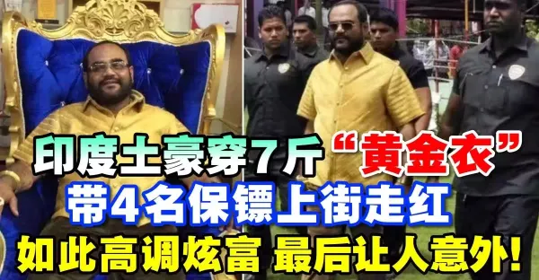 印度土豪穿7斤「黃金衣」,帶4名保鏢上街炫富走紅