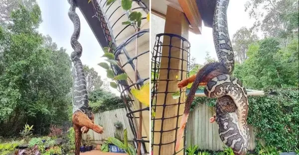 澳洲巨蟒「神出鬼沒」口含大負鼠從天而降!捕蛇專家都無可奈何,目睹巨蟒全部吃完才敢動手